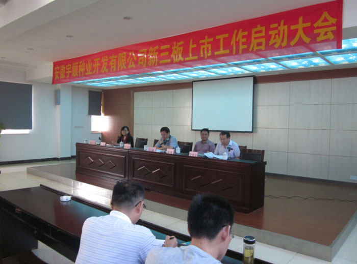 9月3日,安徽宇順?lè)N業(yè)開(kāi)發(fā)有限公司新三板上市工作啟動(dòng)大會(huì)在該公司二樓大會(huì)議室隆重召開(kāi)。來(lái)自該公司各分公司、研究所、各駐點(diǎn)辦事處、直營(yíng)超市近百名員工歡聚一堂、滿懷信心,共同見(jiàn)證公司發(fā)展史上這一重要的歷史時(shí)刻。宜秀區(qū)農(nóng)業(yè)局局長(zhǎng)王磊、金融辦主任張林參加了會(huì)議并發(fā)表了熱情洋溢的講話。