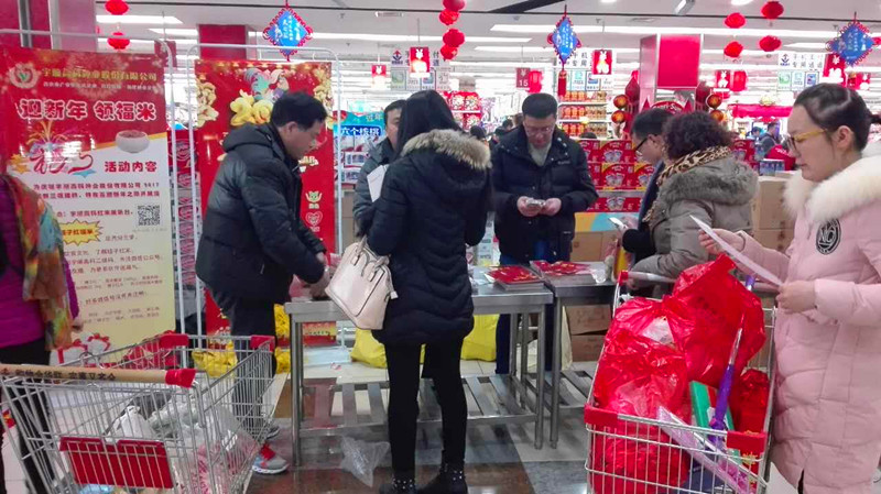 為配合農(nóng)展會的有序進行,我司于19、20日兩天在安慶各大商場同時啟動了“迎新年 領(lǐng)福米”的活動,市民只需憑商場購物發(fā)票就可在專柜上領(lǐng)取嬉子紅米一份,和農(nóng)展會一起讓更多的安慶市民都能在春節(jié)期間吃上真正的紅米飯,感受原生態(tài)的健康。